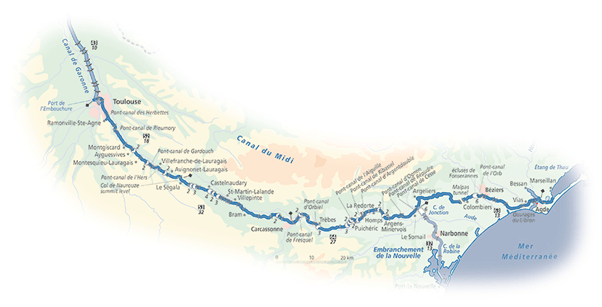 The ‘Grand Bassin’ is a 5ha reservoir feeding the locks. Moorings on the south side. Hire boat base with showers and moorings available to plaisanciers. Dry dock. Fuel point on the north side, but not as cheap as it once was. New quaysides west of the bridge closer to the village centre. Good town with all facilities. The home of the legendary bean and pork cassoulet baked in goose-fat.