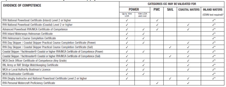 If you’ve successfully completed an RYA or MCA practical course, the table below will explain what class of ICC you can apply for:
