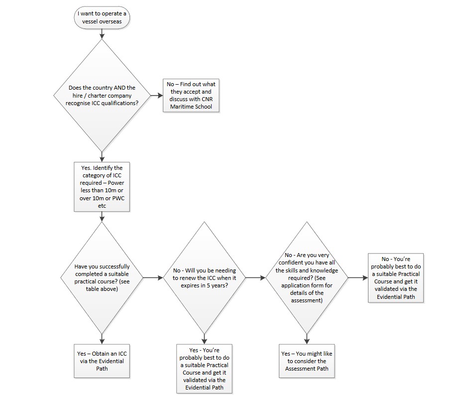 If you haven’t completed the appropriate course for the category of ICC you need and you feel that you have the skills and experience needed then there are assessment options. Coastguard Northern Region can deliver assessments for Power and PWC ICCs. If you need a sail ICC, give us a call and we’ll refer to you to someone who can help.